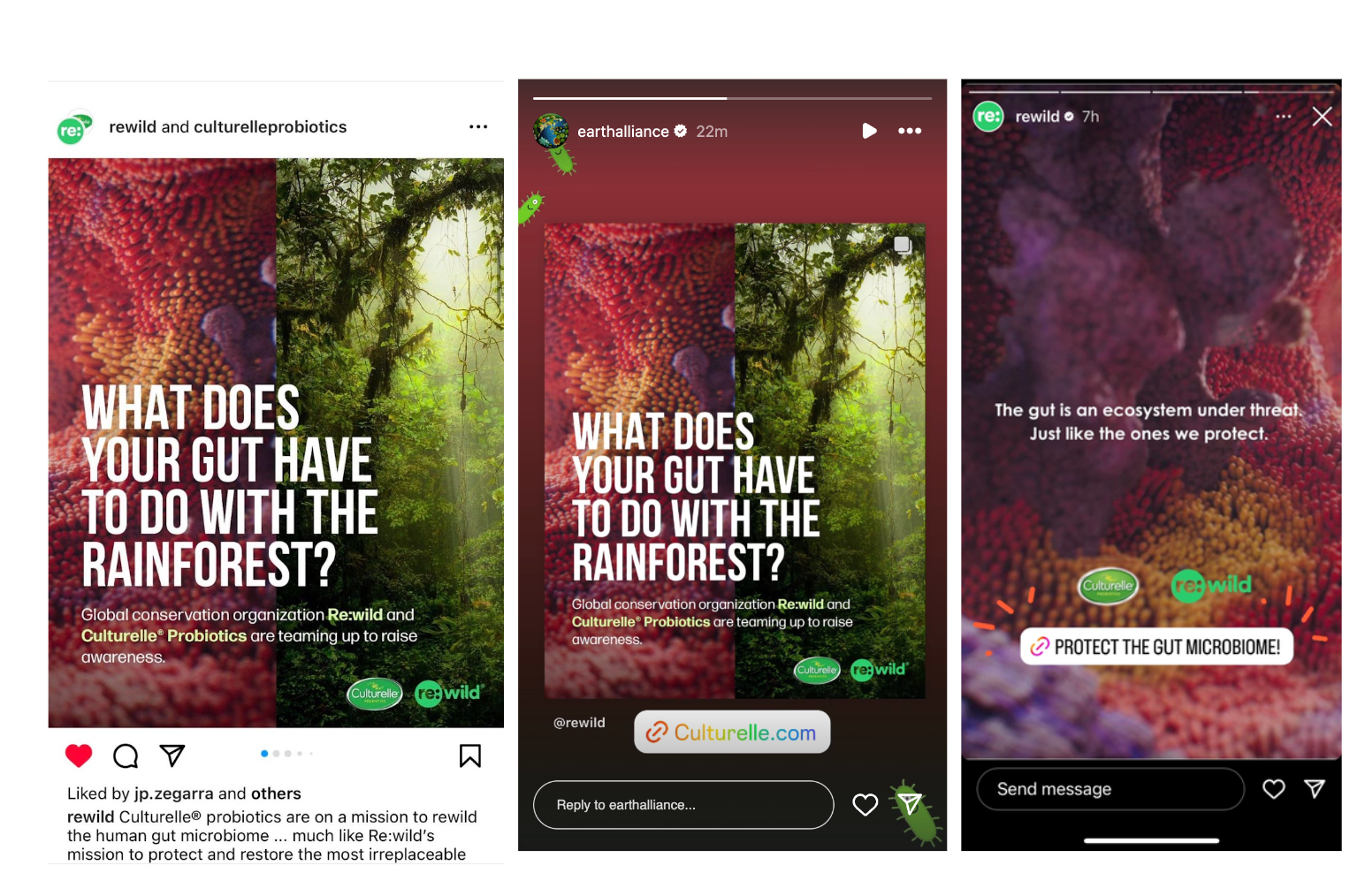 In this partnership, Re:Wild recognized the gut as an ecosystem in danger. This partnership drew attention to the striking similarities between the endangered ecosystems they protect and the fragile state of the gut microbiome.