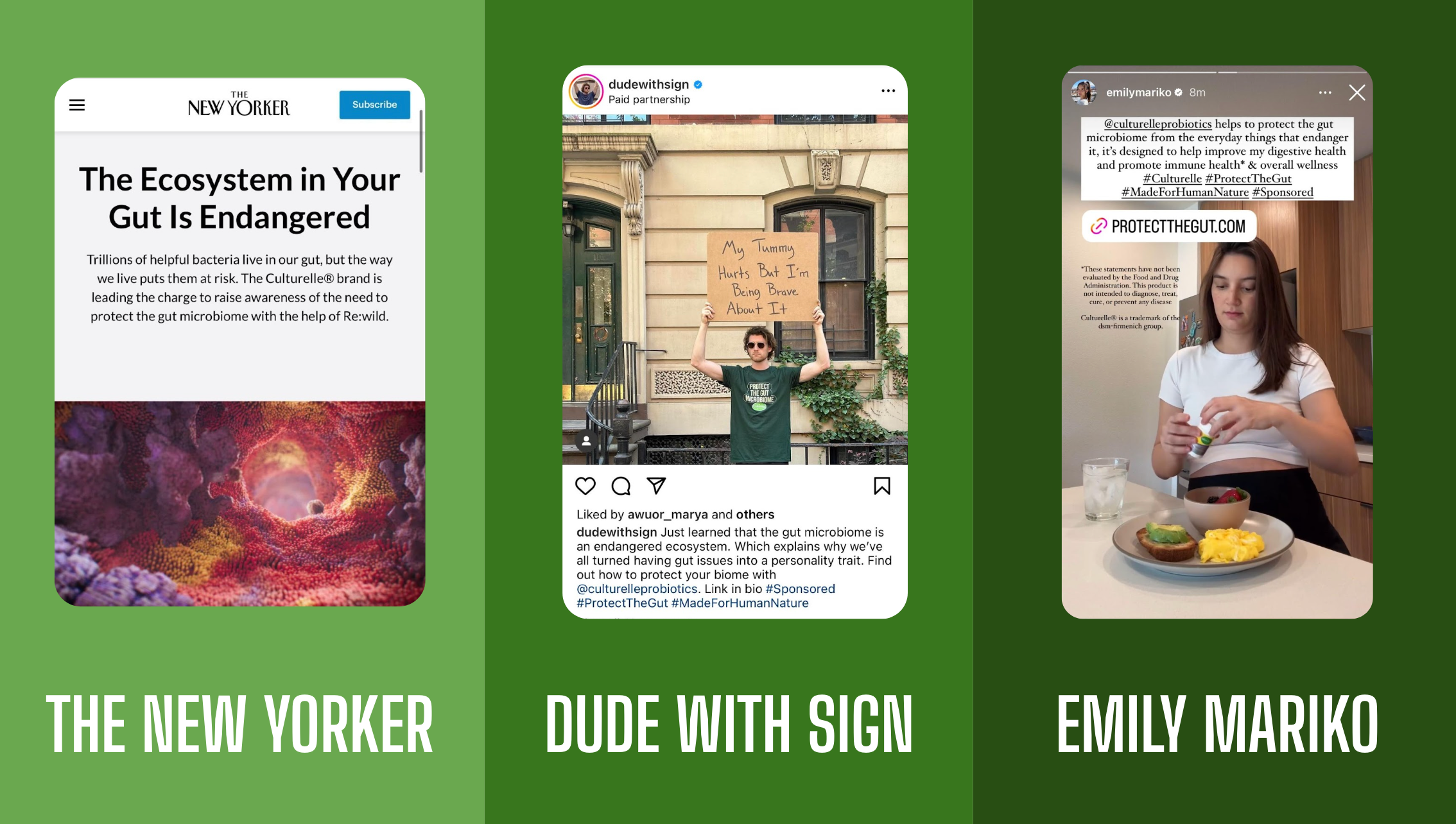 Because of our natural human behaviors, our microbiome is an ecosystem that needs to be saved. And Culturelle is the brand to do just that. We launched a campaign to rally humanity to save the ecosystem inside of us– starting by taking the probiotics that can protect us from ourselves.